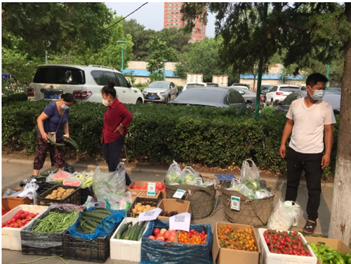 疫情期间,农大社区之前每周都来的新发地蔬菜直通车“休假”后,给居民买菜带来了诸多不便。为此,社区居委会在征求居民意见后,决定在做好防控措施且能确保菜站工作人员身体健康的情况下,引进海淀上庄有机农庄蔬菜进社区,以方便居民买菜。同时,为减少居民在不同地点买菜可能带来更多交叉感染的风险,社区菜车售卖次数增加到每周南区、北区各来三次,以满足社区居民基本生活需求。