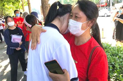 李翠立是高三年级主任,正当她在教师队列中向着对面的考生微笑鼓励时,一位女生冲过来就给了李翠立一个大大的拥抱。原来这位女生从小母亲病逝,一直跟姑姑生活,整个高三年级中,李翠立都是这位女生的“心灵导师”,女生有任何心里话都是跟李翠立说,有任何焦虑情绪也都是李翠立耐心地陪伴她,帮她化解。此刻,这位女生说自己心态放松,充满自信,在进入考场前没想到还看到了自己的“心灵导师”,特别开心。