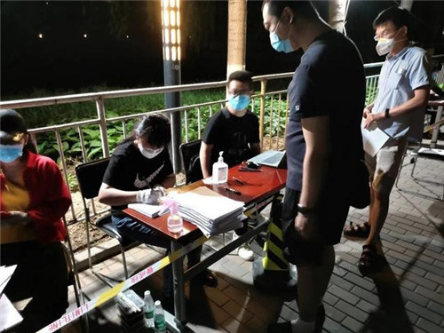 按照“应排尽排、不落一人”的工作要求,先后开展2轮全面“敲门行动”,排查出与新发地相关人员1361人,第一时间落实居家观察措施,实行专人专管制度,每天3次关注体温等身体状况。在小区设立8个核酸检测点,社区党支部统筹党员、楼门长、流管员、网格员、志愿者等力量包片包楼实名制负责核酸检测工作,分楼号分时段分批次开展检测。针对高考、中考学生以及患有急重病等人群开辟绿色通道,一事一方案解决特殊问题。14天内共组织5000余居民进行3次全员核酸检测,做到“应检尽检”全覆盖。