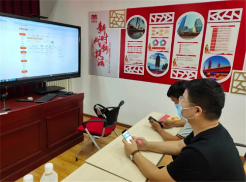 在各社区团支部,团员青年利用居委会电视或投影统一学习,但对于机关团支部来说,由于团员来自各科室,不便于现场面对面学习,大家便群策群力,应用手机软件“腾讯会议”进行线上学习。