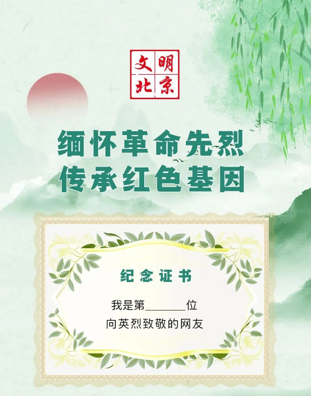 他们用铮铮铁骨,践行誓言与使命。历史镌刻英雄的壮举,精神照亮复兴的征程;先烈风骨永驻心间,化作我们前行的力量。缅怀革命先烈,传承红色基因,为落实习近平总书记关于青少年“扣好人生第一粒扣子”的重要指示精神,围绕立德树人根本任务,以培育和践行社会主义核心价值观为主线,扎实开展“传承红色基因”系列教育活动,清明节期间,首都文明网、“文明北京”公众号推出“缅怀革命先烈 传承红色基因”专题,广泛开展“网上祭英烈”活动。