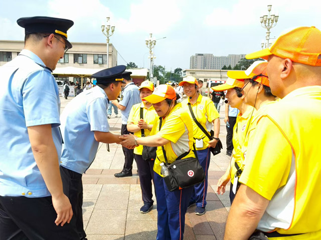 从上海专程前来观礼的刘先生也深有感触:“北京站人特别多,我正发愁怎么去观礼区,一眼就看到了穿黄色队服的引导员。他们非常耐心,回答得清清楚楚。效率太高了!第一站就让我感受到了北京的热情和秩序。”