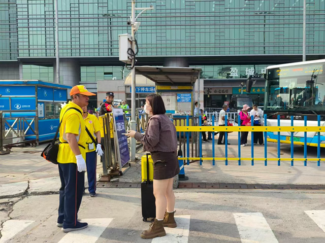 早晨7点10分,经选拔培训的10名引导员在东直门地铁站集合,乘坐地铁二号线首趟列车抵达北京站,迅速分布到出租车调度点、网约车区域、出站口和广场等点位,投入志愿服务。“心情特别激动,也感觉责任重大。”引导员王连颖笑着说,“我们虽不在阅兵现场,但守护好每一位旅客的出行路,就是我们的‘阅兵式’。”