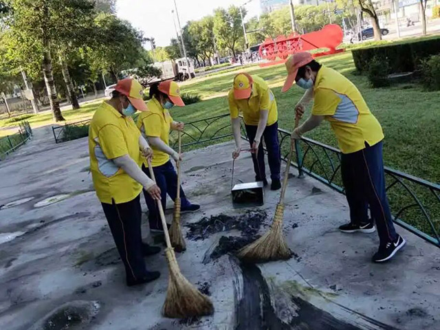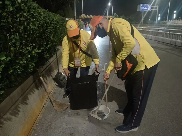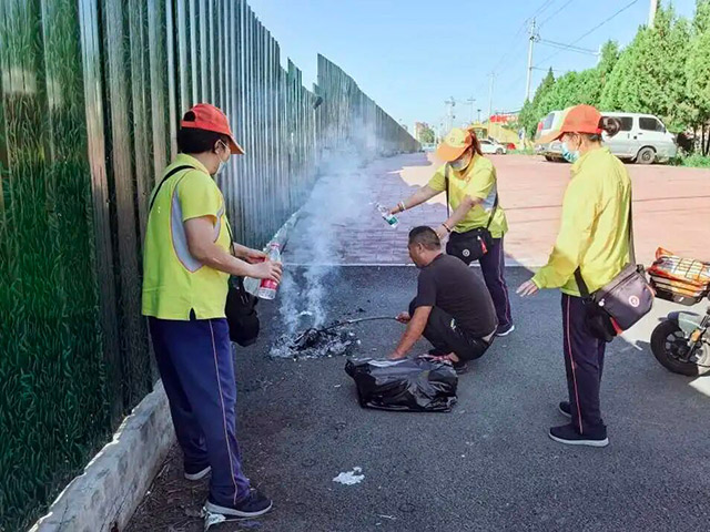 西城、门头沟、通州、顺义等区的引导员携带水桶、扫帚等工具,及时浇灭残留火星,清扫纸灰,防止复燃,维护环境整洁与夜间安全。