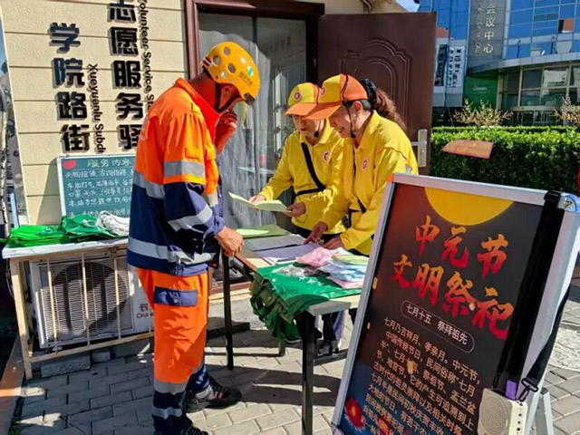 中元节前后,首都公共文明引导员走上街头、深入社区,持续开展“理性追思、文明祭扫”宣传服务活动。他们通过柔性引导和默默值守,有效劝阻不文明祭祀行为,在尊重传统习俗的基础上及时消除安全隐患。