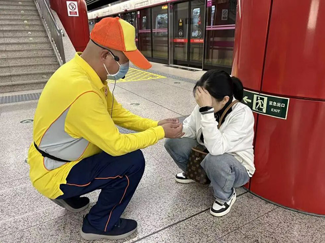 9月23日,在雍和宫地铁站,东城区公共文明引导员毛欣发现一名女士蹲靠在柱旁脸色发白,询问得知是未吃早饭导致低血糖。她赶紧拿出糖果喂乘客服下,并搀扶至座椅休息,几分钟后乘客逐渐好转。