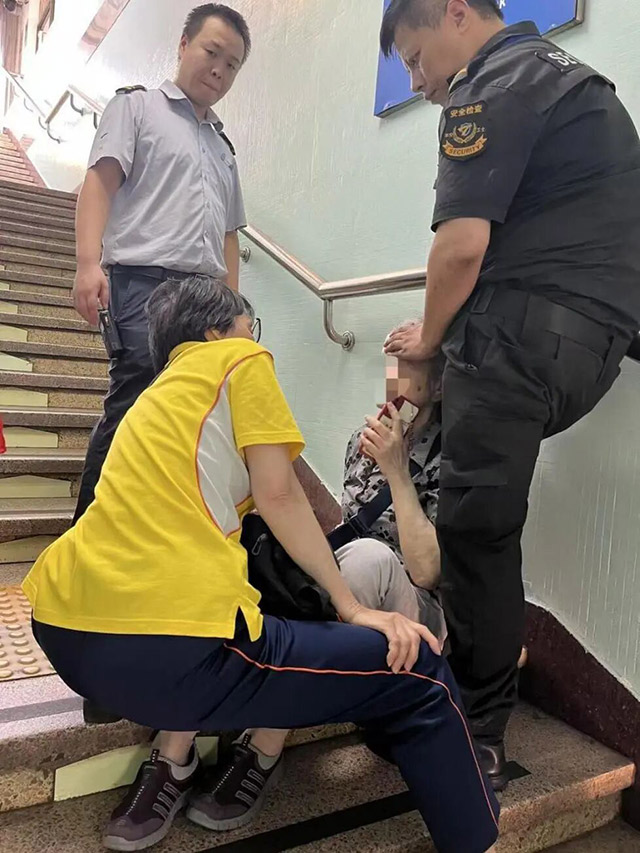 9月18日,在地铁2号线长椿街站,西城区公共文明引导员铁崇芳听到惊叫声,见一位女士瘫坐在台阶上。她迅速搀扶并呼叫站务员,在征得同意后喂其糖果,待乘客情况稳定后才离开。