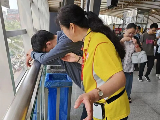 近日,公共文明引导员在早高峰服务时,接连救助多位低血糖的乘客。他们反应迅速、处置得当,在繁忙的交通枢纽守护了市民的出行安全。