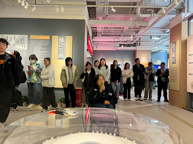 徐燕春作为志愿讲解员在国家无障碍环境展示馆为学生们讲解