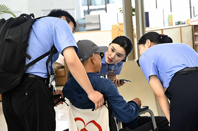 杨女士推着轮椅回到候车室,望着身旁的大包裹面露难色。陶志婷立刻快步上前,“您别慌,有什么难处尽管跟我说。”了解情况后,陶志婷推着轮椅将她们带到爱心服务区稍作歇息。