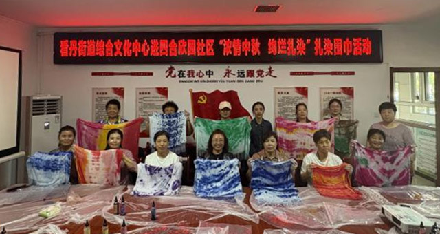 看丹街道四合欣园社区举办了“浓情中秋 绚烂扎染”庆中秋扎染围巾主题活动。让居民充分感受非遗传统文化的魅力,共迎中秋佳节。