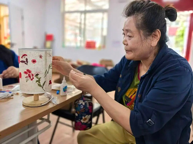 玉泉营街道万柳西园社区开展的“干花台灯”活动,则将非遗压花技艺与中秋灯艺巧妙相融。居民们精心挑选干花素材,搭配色彩、设计构图,将自然之美定格于灯罩之上。一粘一贴中,一灯一亮间,以手作之美拉近邻里距离,寄一份团圆祝福。