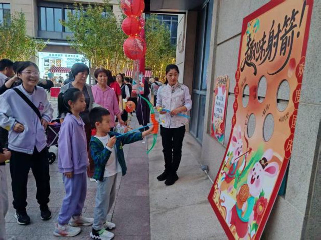 王佐镇翡翠山社区特举办 “邻里聚中秋・同心贺国庆” 市集游园会。游园会中,社区划分出了市集区、互动区、舞台区等区域,为社区居民提供售卖市集、猜灯谜、投壶射箭、灯笼DIY、文艺演出等活动。舞台区内,居民带来的歌舞活力四射、朗诵情感真挚、戏曲韵味十足;小朋友的大提琴独奏沉稳悠扬,小提琴合奏旋律明快,稚嫩认真的模样获阵阵掌声。