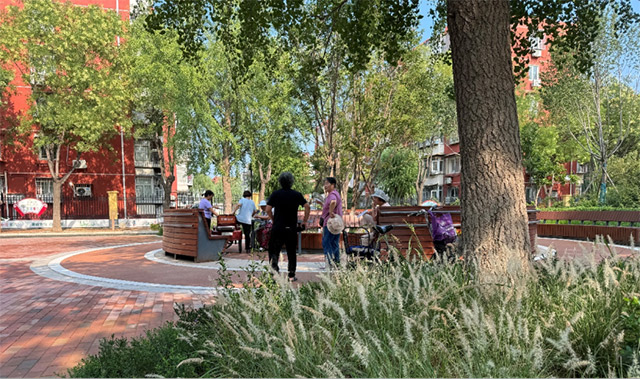 街区在改造中打通了原本封闭的绿地边界,让公园景观“借”入城市。同时增加了林荫步道、休息港湾、健身场地等设施,成为居民日常休闲的好去处。人行道高差平缓化、公交站增加候车空间等细节,处处体现着贴心的人性化设计。
