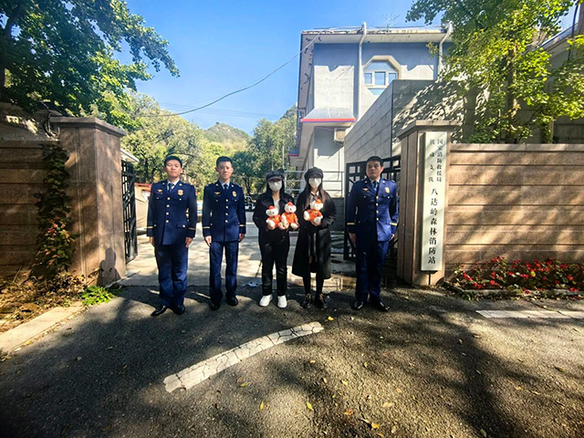 尚未走远的两位姑娘返回了消防站,接过“消防小熊”玩偶时难掩喜悦,还与消防员们合影留念。借此机会,消防员结合秋冬林区防火重点,还与她们分享了野外游玩不携带火种、发现火情及时报警等安全知识,让这份温暖多了一层“安全守护”。