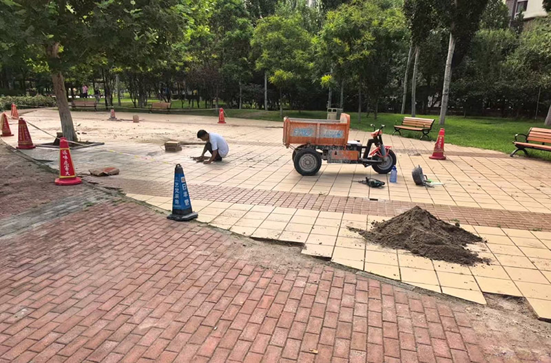 在社区与物业的共同努力下,整改工作迅速推进。双方共同出资,组织专业人员对小广场展开全面修整。不仅将大树移栽后留下的土坑填平,还在现有大树的树坑周围铺设了可透水砖。对于地面上缺损的瓷砖,工作人员逐一排查、统一更换,不到一周时间便顺利完工。