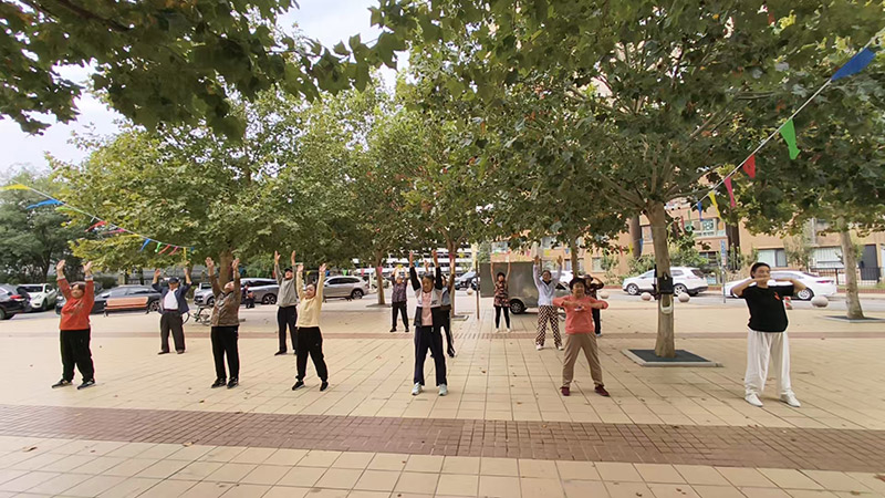 今年5月,为丰富居民文化生活,丽泽景园社区牵头成立了太极队。每天清晨8时许,队员们在小广场上整齐列队、舒展身姿,成为社区里一道别样的风景线。随着太极队的影响力扩大,加入的居民越来越多,队伍规模很快达到20余人,小广场也成了居民日常互动交流的重要场所。