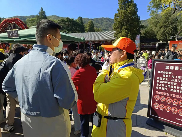 香山公园以其深厚的文化底蕴和经典的红叶景观,成为众多游客的首选。针对景区道路复杂的情况,引导员们做足了准备。