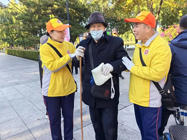 10月26日上午,丰台区公共文明引导员淮峰在陶然亭公园服务时,及时发现并救助了一位遛弯摔倒的97岁高龄老人,展现了“柠檬黄”敢于担当和乐于助人的品格。