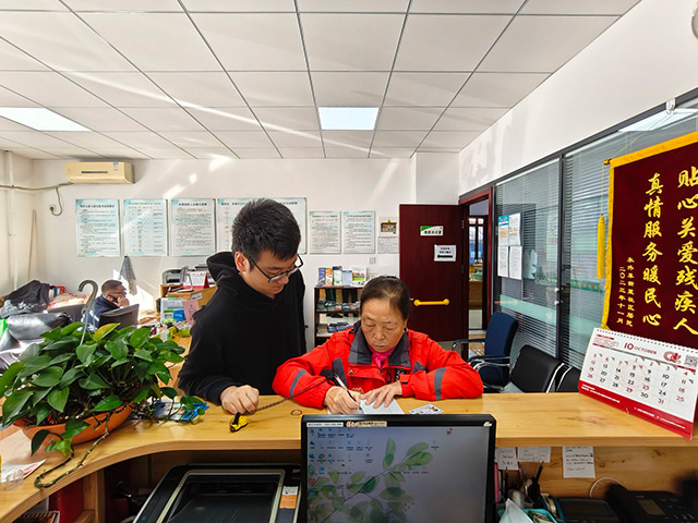 近年来,随着残联业务逐步向线上迁移,大部分业务在网上操作即可办理。付南钧主动帮助不会上网的居民在线上申请残疾证,耐心为他们讲解申请流程。他还协助子女不在身边的老年残疾人在网上申购盲杖、轮椅、坐便椅和洗浴椅等辅助器具,帮助残疾人在线上申请居家无障碍改造、儿童康复和各项残疾人补贴。