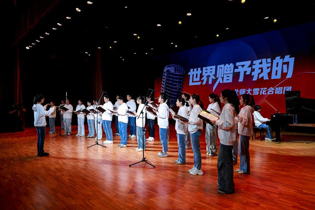 活动尾声,北京师范大学学生代表上台分享自己在服务保障2022年北京冬奥会、抗战胜利80周年纪念活动等工作中的亲身感受,国旗护卫队成员、研究生支教团成员、志愿者代表讲述自己学习“文秀精神”,谱写新时代青春之歌的实践故事。歌手温奕心为整场活动献唱歌曲《一路生花》,用歌声鼓励青年们在青春的道路上坚持热爱、步步生花。活动现场气氛热烈,高潮迭起,同学们用心走进每一位嘉宾的亲身故事,场上场下涌动着青春的气息。