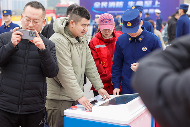 今天的启动仪式现场还设置了消防模拟实验区、消防互动打卡区和消防逃生体验区。围绕消防宣传月“安全用火用电”的主题,消防模拟实验区通过三个实验直观呈现火灾风险与处置关键。