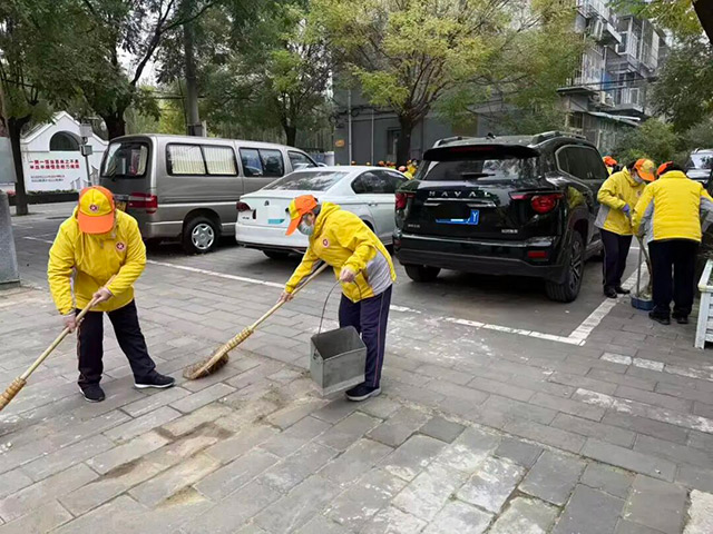 顺义区公共文明引导员前往建新北区老年驿站,开展卫生大扫除。他们清理驿站周边的杂草、落叶和垃圾,擦拭公共设施,整理活动区域,为老人们营造干净整洁的休闲环境。