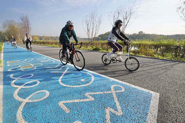 骑行活动通过沉浸式骑行体验,沿运河生态廊道展开秋日6公里骑游,沉浸式感受 “京秋慢时光”。沿途不仅有运河两岸层林尽染的秋日盛景,更能通过骑行道沿线的文化标识,了解大运河漕运人文历史。在践行绿色出行理念的同时,深度体验大运河文化魅力与副中心慢行系统建设成果。