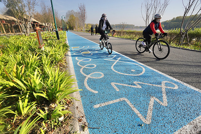11月10日,“遇见·大运河”——“骑游北京”体验京秋慢时光主题骑行活动在大运河森林公园漕运码头举办。