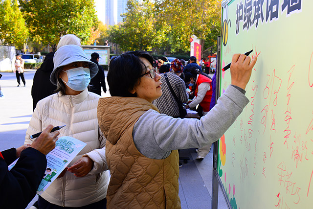 在“护绿承诺墙”前,前来参加活动的居民用笔在公约墙上签下自己对于环境治理的想法,或是签上自己的姓名,承诺爱护一花一草。公约筑梦板前,居民们正在根据《居民公约》内容手动把拼图拼起来。这份《居民公约》包含垃圾分类、生态环保、规范施工、爱护公物等5方面内容,涉及到居民生活每个角落。