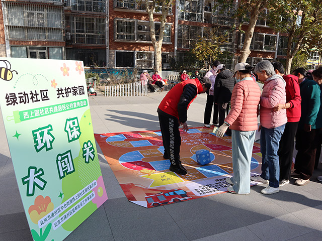 11月14日上午,走进西上园小区广场,“绿动社区 共护家园”活动现场热闹非凡,6个游戏打卡项目吸引了上百位居民参与,居民们早早排队签到,领取游戏卡与定制小拉车。