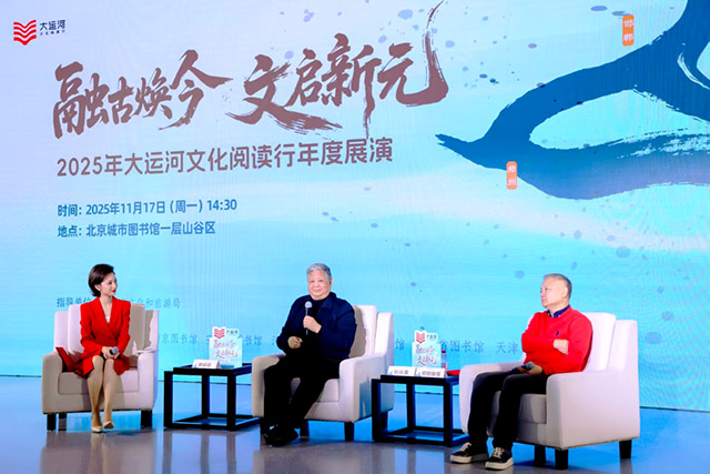11月17日,由北京市文旅局指导、首都图书馆联动大运河沿线公共图书馆举办的“2025大运河文化阅读行”活动在北京城市图书馆圆满收官。活动以“融古焕今 文启新元”为主题,通过名家分享、短剧发布、数字小程序上线等多元形式,为贯穿八省市的年度文化之旅画上句号。