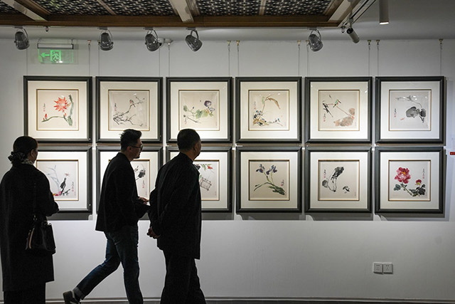 参观者在荣宝斋驻足了解拍卖文物艺术品。