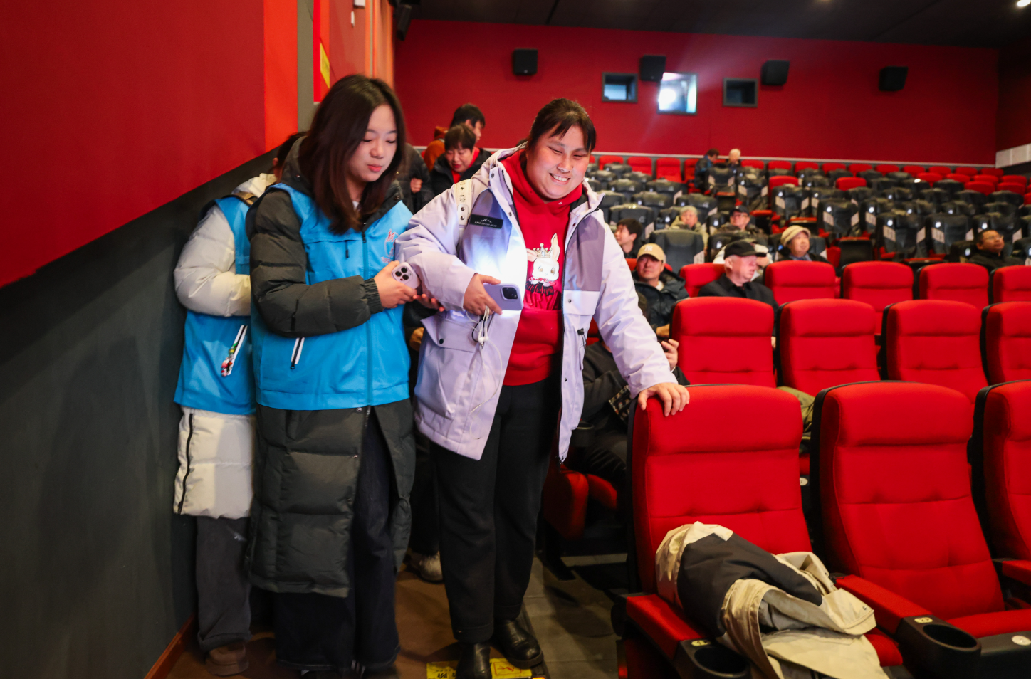 朝阳区万达影城(新荟城店)是北京首家新时代文明实践“光明影院”。12月1 日,30名残疾人朋友在志愿者全程陪护下参与活动。