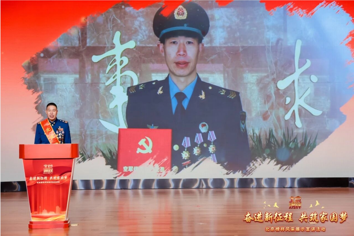 “2024北京榜样”邓士兵用脚步丈量对党的忠诚,他回忆了自己秉持“党叫干啥就干好啥”的信念,将上百公里国防通信线路“可通率”保持100%,巡线护线总里程相当于绕赤道5圈的军旅生涯,赢得在场观众的热烈掌声。