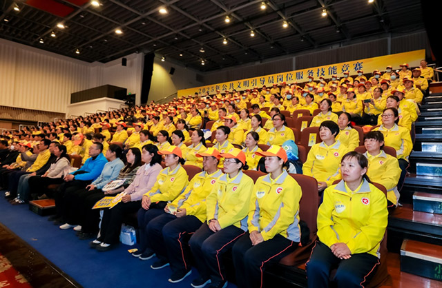 来自各区的300余名引导员代表在现场观摩。决赛间隙设置观众互动答题环节,引导员代表积极踊跃参与,现场互动热烈。