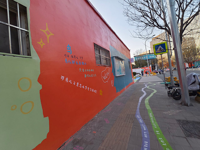 这条马路位于北京十一学校丰台小学门前,是各界联手打造的“彩色学安路”。