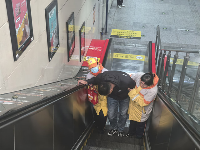 12月4日上午9点10分,顺义区公共文明引导员杨金英等4人,结束服务后在南法信站乘坐地铁回家。车厢里,一位男乘客脸色苍白,额头冒汗,整个人在座位上蜷缩成一团,双手紧捂腹部。这一异常情况立刻引起了引导员的注意。