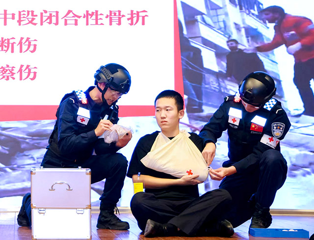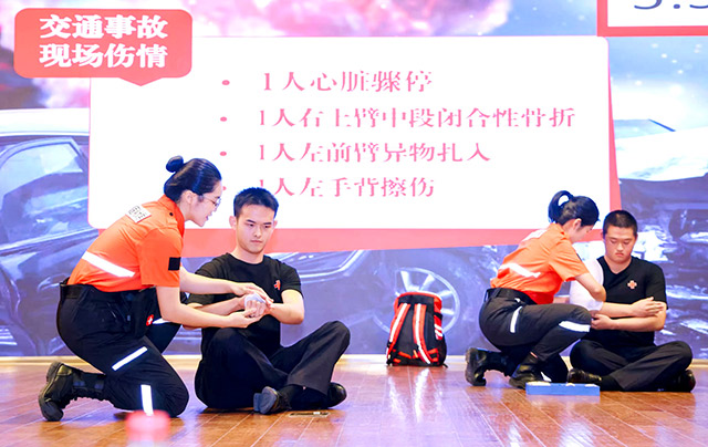 市红十字会介绍,本次参与最终交流展示活动的11支队伍,从48所高校中脱颖而出,所有队员都经过严格选拔和系统培训。面对模拟的多种复杂伤情,队员们沉着冷静、判断准确、操作规范、配合默契,从现场评估、检伤分类,到心肺复苏、创伤救护、骨折固定,一系列救护动作迅速连贯,充分展现了扎实的急救技能功底、良好的心理素质和高效的团队协作能力。