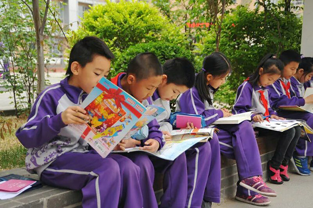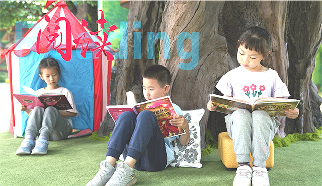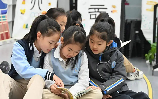 学校将每年的4月定为学校读书月,同时举办丰富多彩的阅读活动,积极构建“1+X”课程体系建设,探索“语言与阅读”学习领域。学生结伴在校园里读书,制作精美的书签互相赠送,分享一本好书,共读一个故事。