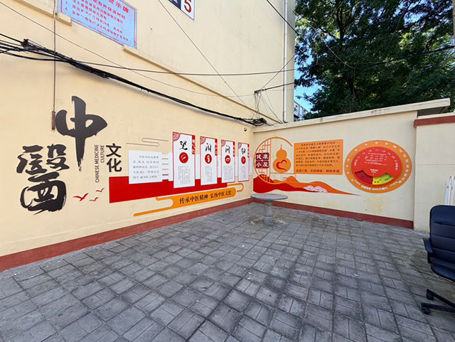这间位于5号楼旁的健康小屋,前身是一处闲置的门房。经过改造升级,如今面貌一新:外墙绘有图文并茂的中医养生知识和日常健康常识,成为一道温馨的“健康文化墙”。走进屋内,无障碍扶手、适老座椅等设施一应俱全,还配备了血压计、体脂秤等基础医疗设备,环境整洁而舒适。