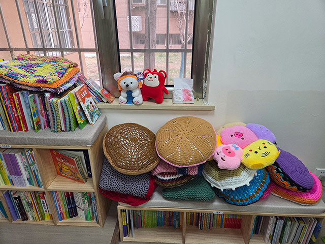 近日,朝阳区三间房乡定西南里社区图书馆里,悄然添置了15个配色别致、图案各异的手工坐垫,它们出自“桑榆手工小组”9位年过六旬的阿姨之手,为前来阅读的居民带去融融暖意。