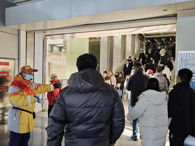 引导员们的身影出现在最需要的地方:在商场外的寒风中耐心指路,帮助行动不便的老人推稳轮椅,为手提重物的顾客推开大门;在商场内不时提醒顾客注意脚下、避免拥挤,并温馨提醒家长看护好儿童以防走失。