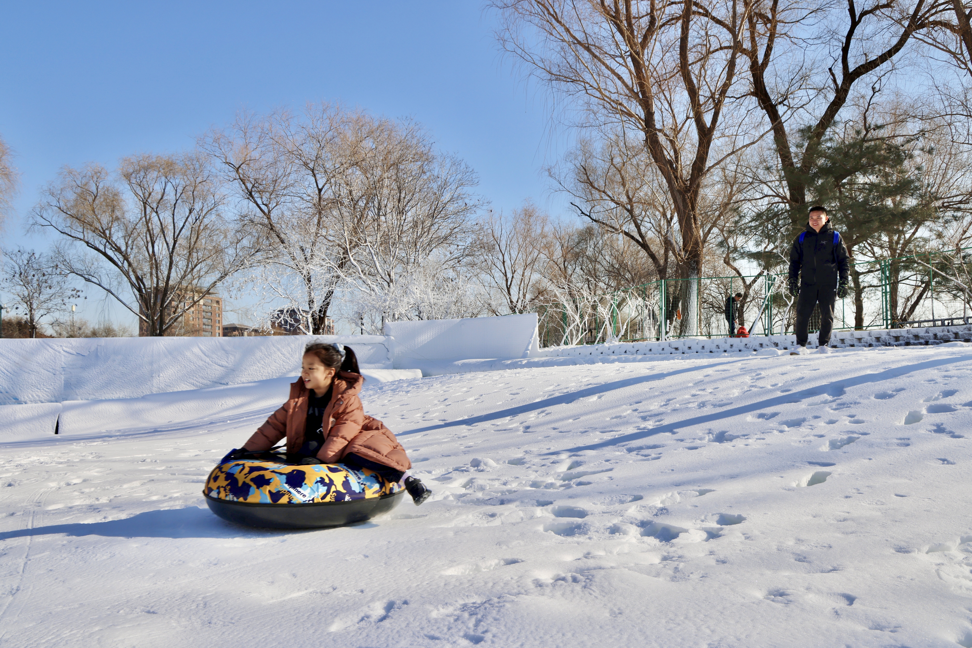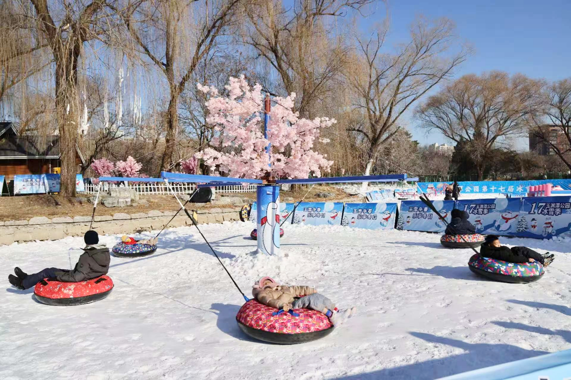玉渊潭公园第十七届冰雪季本周末正式开幕,雪场设置于公园樱花西小湖,总占地面积约8000平方米。今年雪场全新增设了大型冰滑梯,三条百米滑道让游客畅享冬日里的速度与激情。