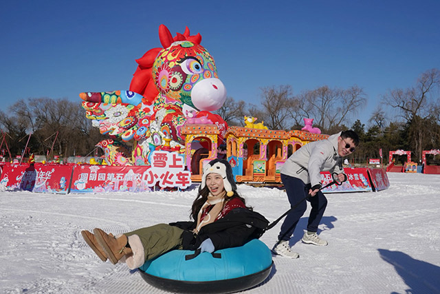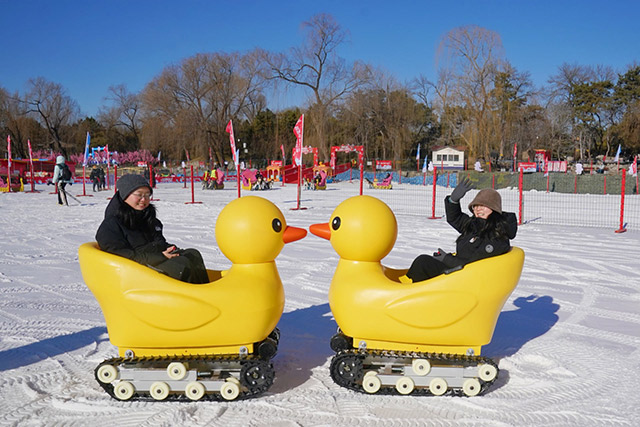 值得一提的是,本届冰雪季更暗藏“文化彩蛋”。冰雪嬉戏,古来便是皇家冬日雅事。清代帝王尤爱冬季冰嬉,乾隆皇帝曾亲笔撰写1300余字的《冰嬉赋》,将冰嬉定为“大清国俗”,彰显国力昌盛。作为昔日皇家御苑,圆明园见证了清代帝王与冰雪相关的故事,更流传着“康乾盛世牡丹情”“三朝天子共赏牡丹”等经典历史典故。如今,游客穿行于冰雪覆盖的园区,在戏雪玩冰的欢乐氛围中,仿佛穿越时空与历史对话,于欢声笑语间触摸那段辉煌的皇家过往,让冰雪体验更添一份文化厚重感。