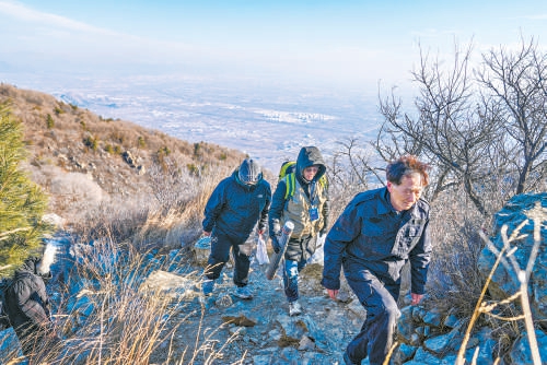 顶着大风爬过一段陡峭的山坡,马垒和队员扒开枯枝,一遍遍弯腰下蹲,检查山石,对比手机里的照片。