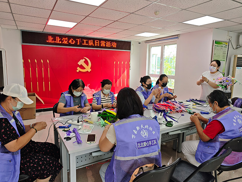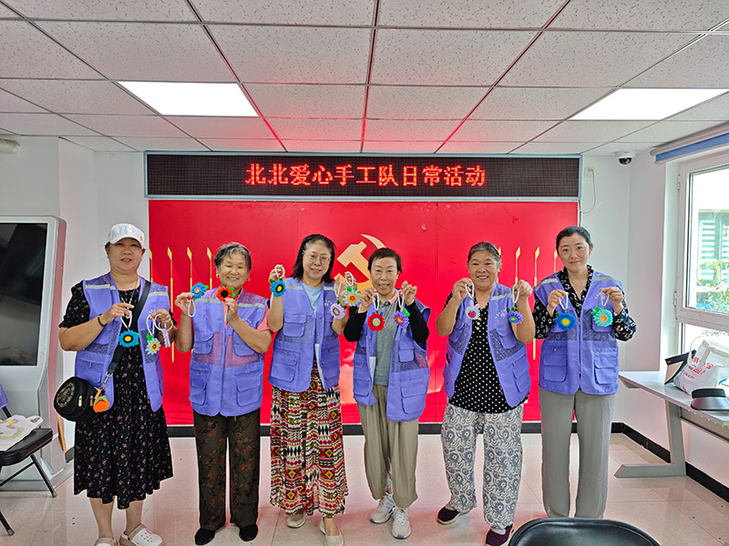 朝阳区常营万象新天北社区,有一支北北爱心手工队,由热爱手工的社区居民组成,有20余人。她们定期相聚在社区活动室,开展活动,用一双双巧手编织出有趣的手工作品,将它们送给社区里的老党员,独居高龄老人和小朋友。自2025年成立以来,北北爱心手工队因共同的爱好相聚,更因爱心凝聚起来,“编织”出社区治理的温暖画卷。
