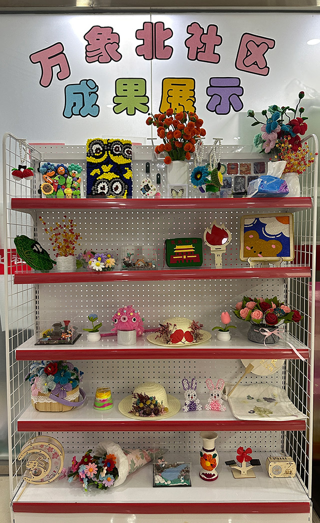 万象新天北社区的不少居民都心灵手巧,退休后希望能找点有意思、有意义的事情干,对社区组织的各种活动都特别积极。“有的阿姨们状态特别好,聪明伶俐,从小就是家里的‘巧娘’,做一些手工活动对她们身体有益,还能锻炼大脑和思维,我们就想组织一支队伍,让她们发挥特长。”万象新天北社区工作人员说,2025年,社区决定成立北北爱心手工队,给居民提供一个学习、交流、分享手工技艺的机会,让大家在动手实践中感受乐趣,收获成就感。