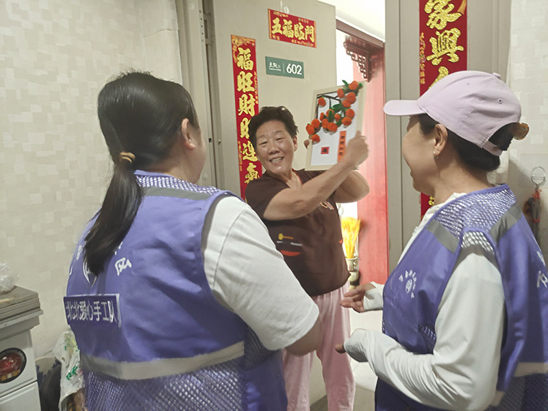 爱心手工队不仅让老年人和青少年群体感受到了社区大家庭的温暖,还特别关注邻里关系和社区治理。队员们住在不同的楼栋,谁家有个事儿,互相都能招呼着帮忙;社区的边边角角有了破损的地方,队员会及时告知社区;邻居们因为楼道里的小事拌嘴,住在附近的队员也会帮着劝说解决……很多小事都是通过爱心手工队的介入完美解决的。