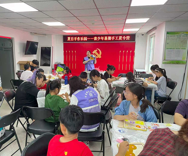 在各种传统节日和重大活动时,北北爱心手工队也力所能及发挥自己的作用,在社区里传递爱意。队员们将凝聚着心意的五谷丰登创意手工花束,送给在党50年的老党员;帮助社区组织暑期青少年活动手工夏令营,小朋友们做纸浆画、非遗烧箔画、古风团扇、冰箱贴、超轻黏土画,免费、有趣的活动受到家长和孩子的一致好评。现在,北北爱心手工队的手工慰问活动已成为社区关爱老人、暑期服务青少年的常态化项目。